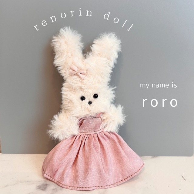 - roro - ふわふわのアイボリーの毛が特徴のウサギ。 ピンクのドレスを着ています♡ size 縦12cm×横7cm